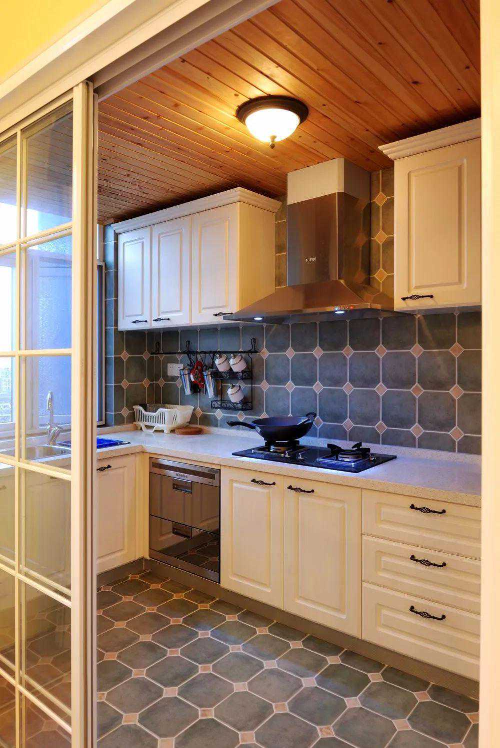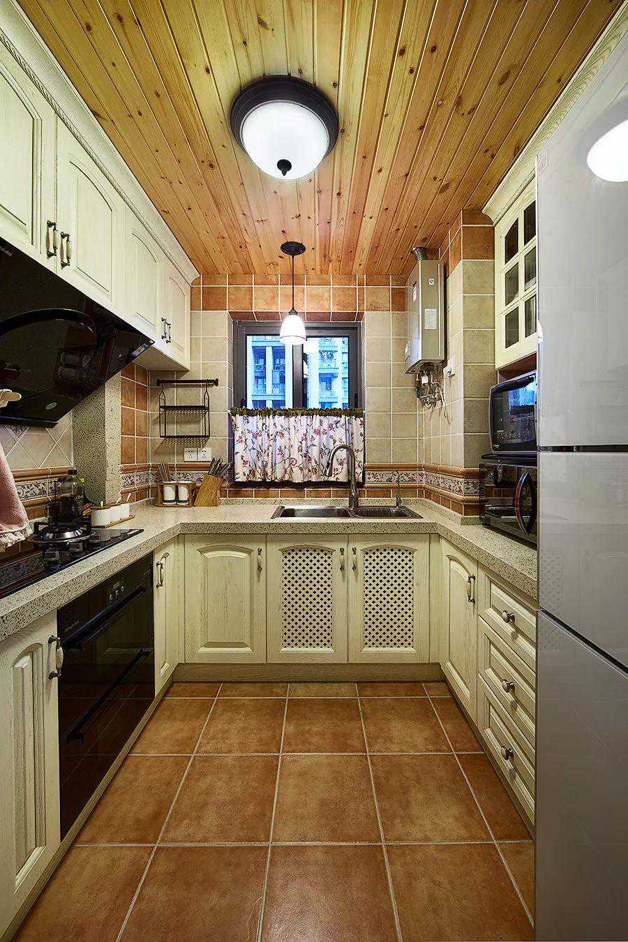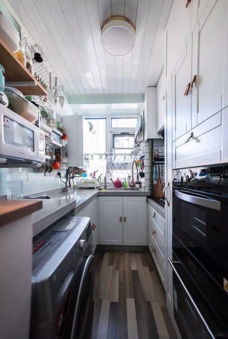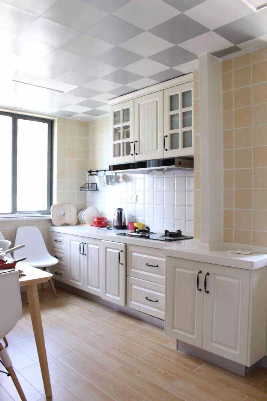 如果厨房不经常爆炒的话,也可以做木工吊顶,然后再刷上防水较好乳胶漆,让厨房的天花简洁而又大方。