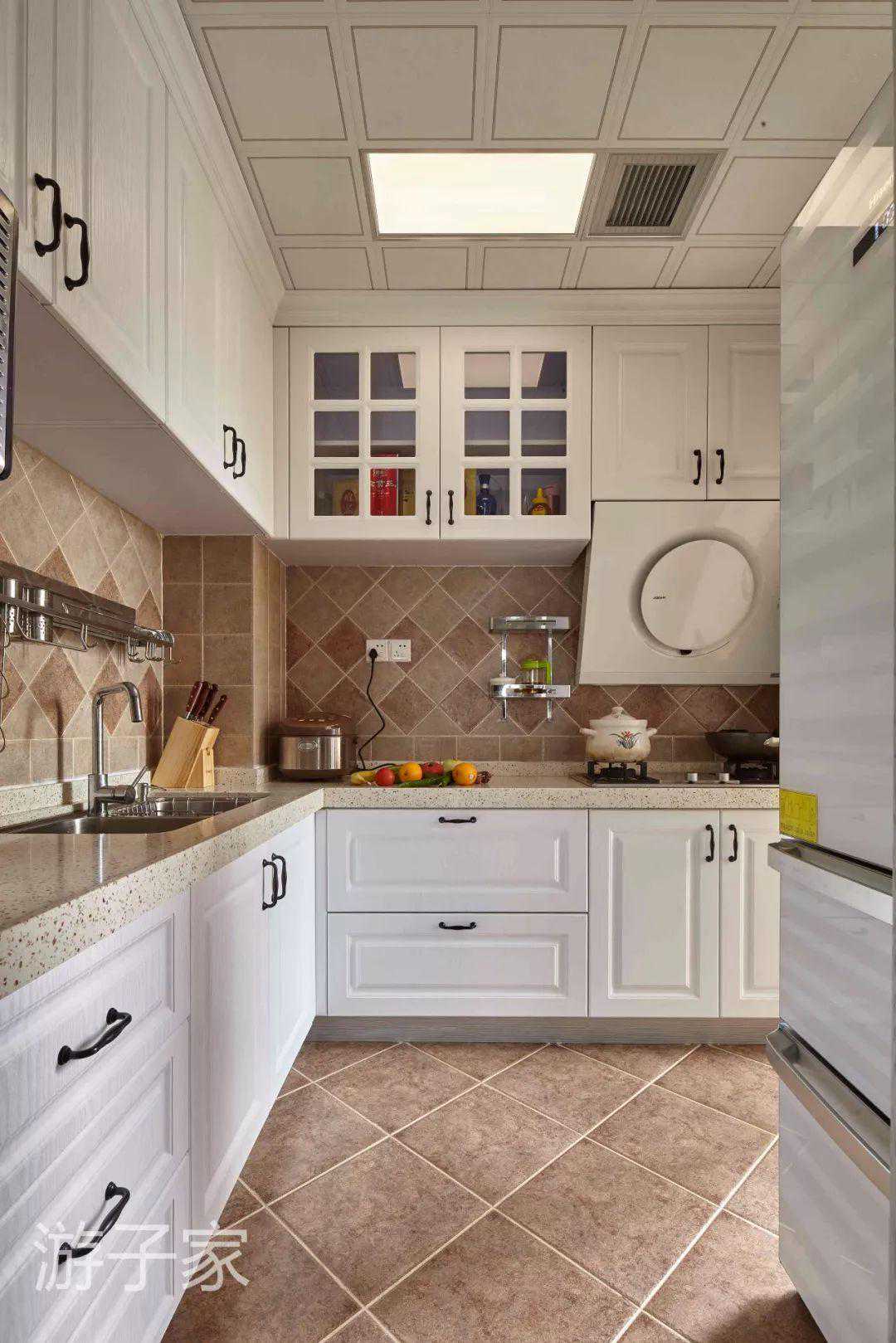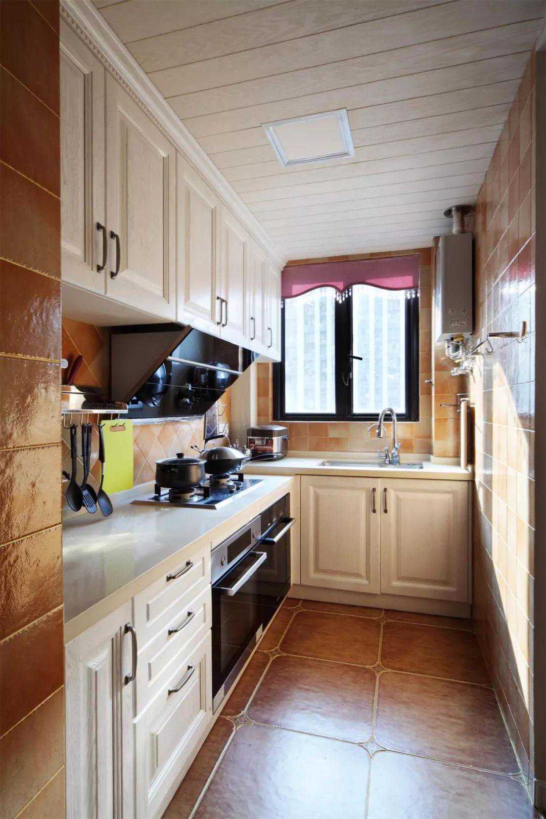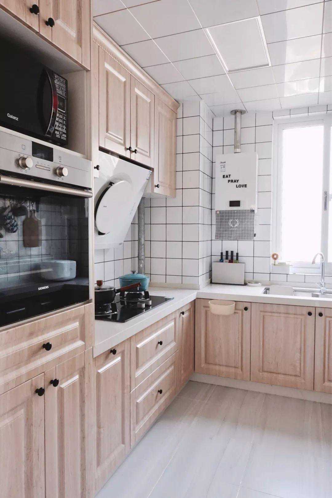 如果厨房不经常爆炒的话,也可以做木工吊顶,然后再刷上防水较好乳胶漆,让厨房的天花简洁而又大方。