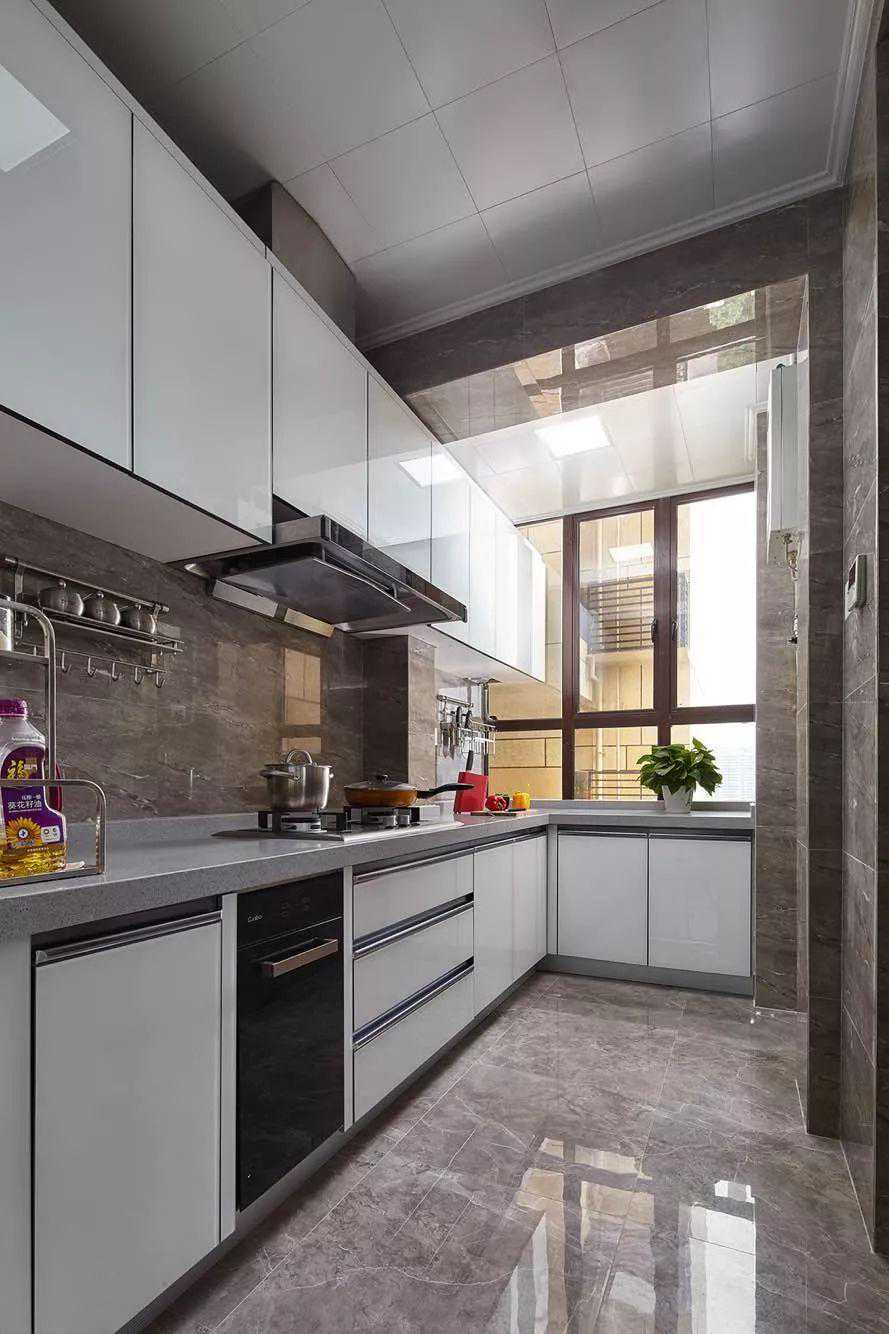厨房是一个做饭炒菜的空间,尤其是喜欢爆炒中餐的家庭,厨房空间里不可避免地会有大量的油烟,所以这类厨房的吊顶,一般都是采用容易清洁的材质为主,比如最常规的就是铝扣板的天花了,简洁美观两不误。