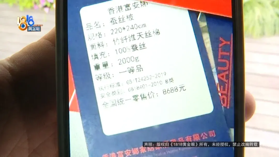胡先生:4月13号,因为现在天气变天了,在那个快手平台,去买了一个夏季的蚕丝被,当时是花了300多元,当时主播说是富安娜的,然后蚕丝被,他们打折处理。