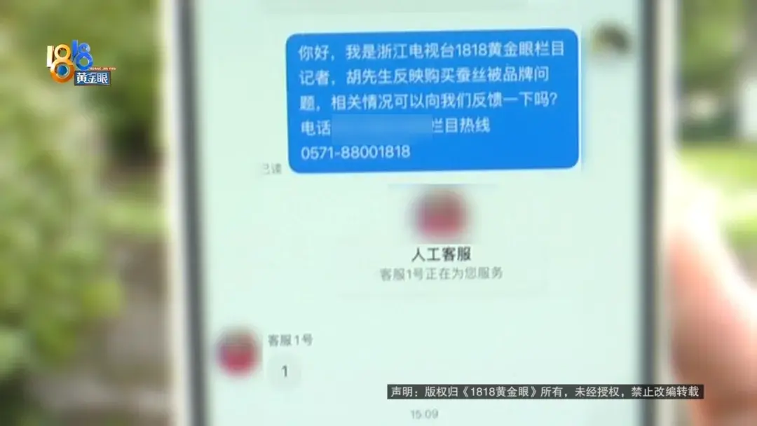 胡先生:它上面写的是香港富安娜,正品的名字就是富安娜,然后它的那个商标也是跟正品的商标是一模一样的。我打电话给他们,他们让我加了(富安娜)官方客服的微信,把照片拍给他们,他们看到了之后说是假货,然后说要开具官方的那个假货证明要到下周。