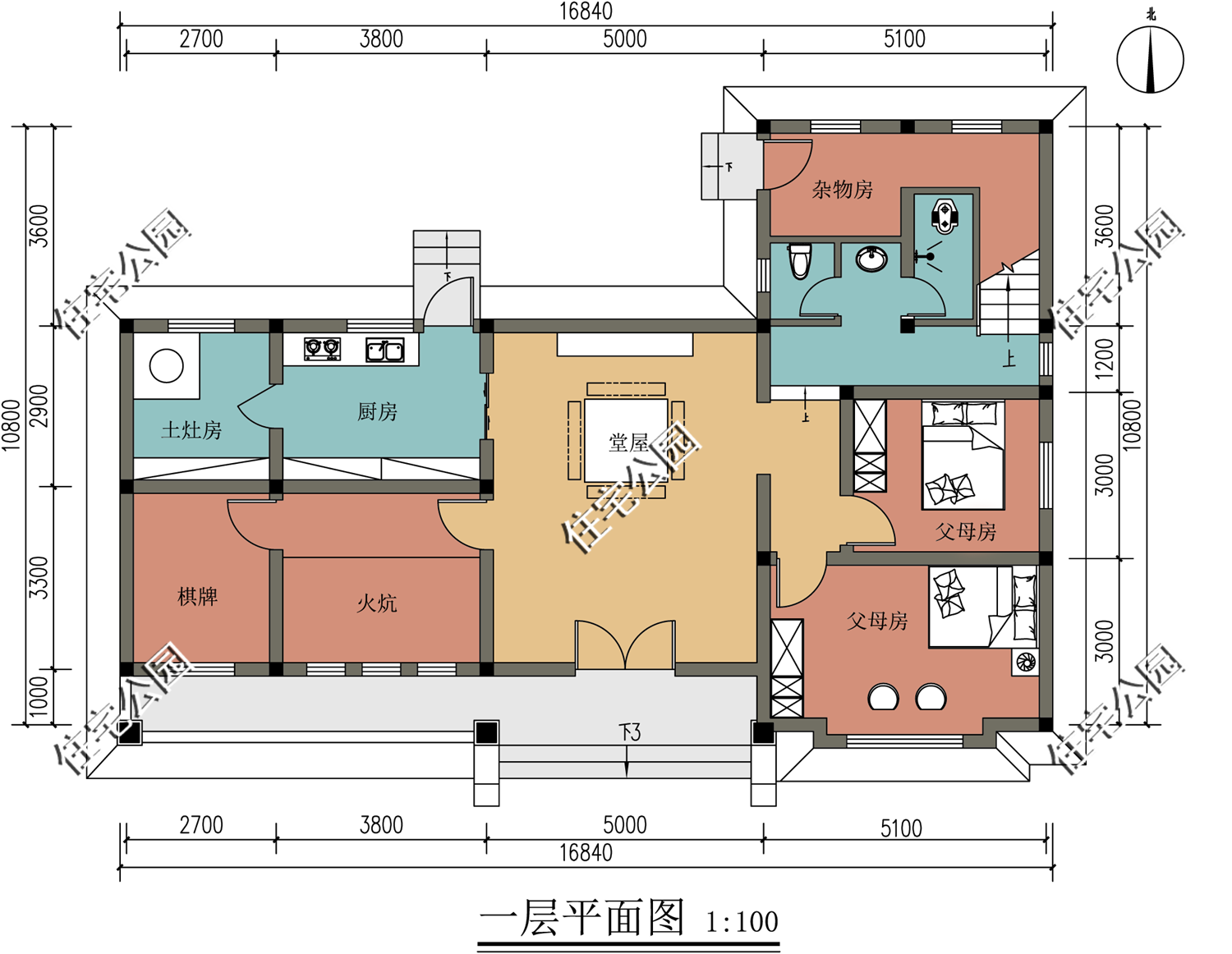 第8套:大露台+柴火厨房+舒适老人房,15x16米乡村别墅,主体预算40万