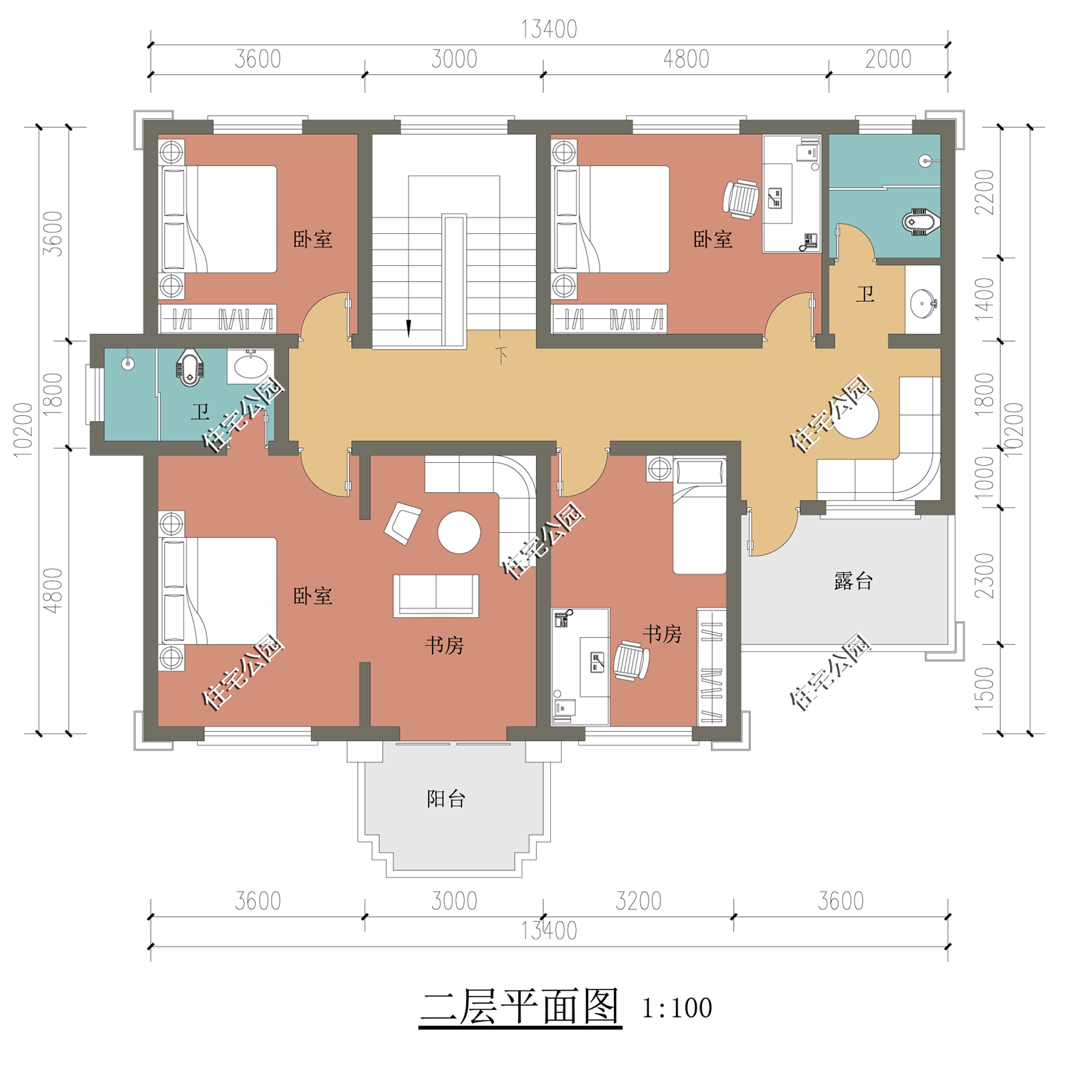 建筑情况:共设4室2厅2卫1厨1书房1杂物间1储物间