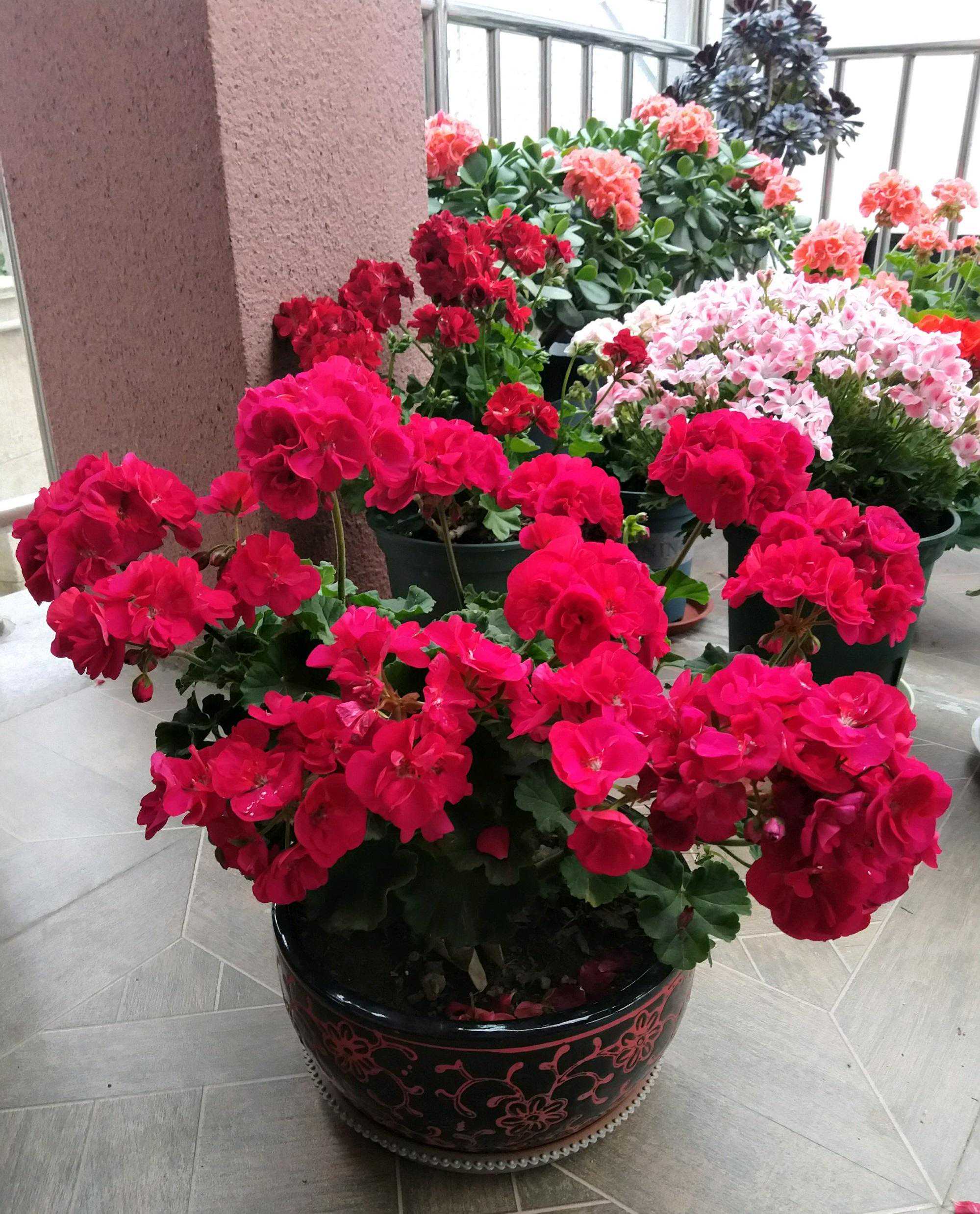 特别是那些大花天竺葵,虽然它们的花期集中在春天秋天,但是开起花来简直是不要命似的开,如果你修剪得当,它能开成直径一米的大花球。有些朋友是最爱天竺葵的,在家里的阳台上只养天竺葵,简直是五颜六色的花园。