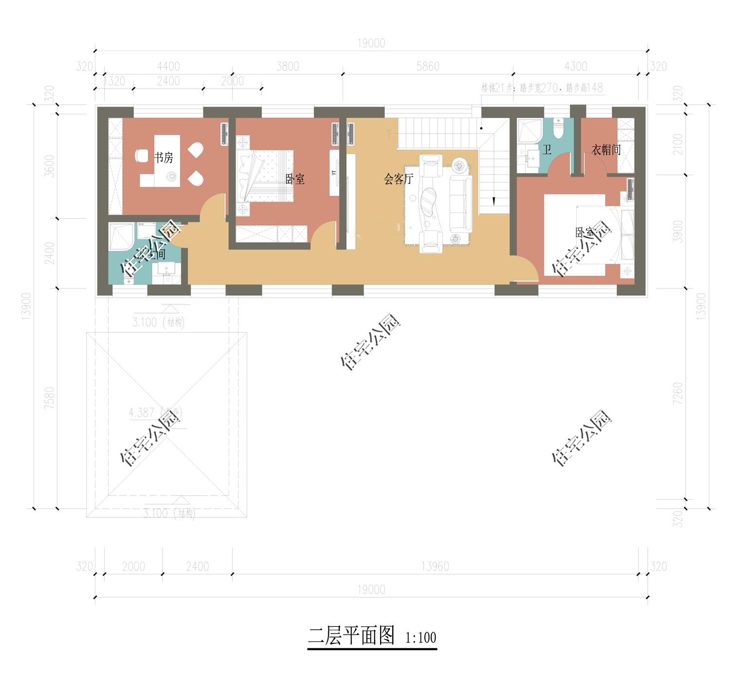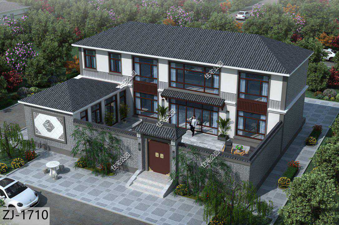 住宅特点:中式风格、宽敞庭院、主副房设计。